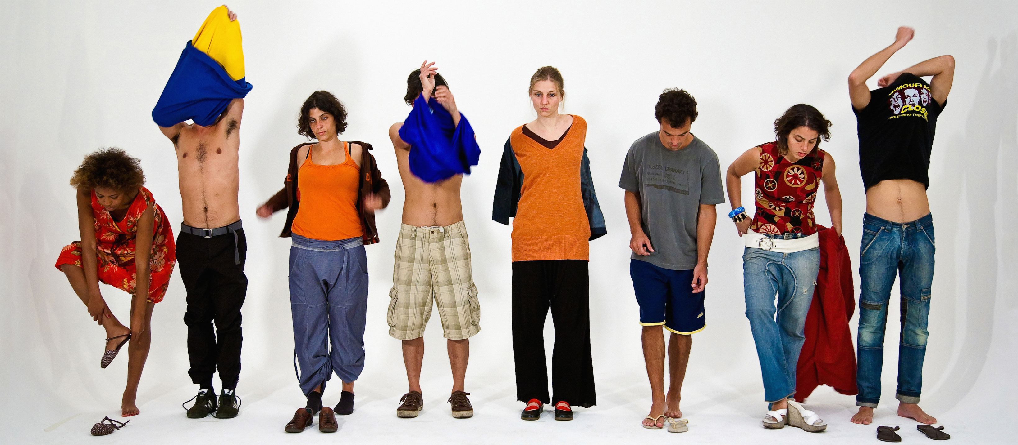 A exposição “Lambe Lambe Troca Troca” do artista carioca Daniel Toledo abre na quinta feira dia 9 de setembro na galeria 2 do Espaço Cultural Sérgio Porto. Em sua primeira individual, o artista apresentará um painel gigante de 2×40 metros ocupando todas as paredes da galeria. São 8 imagens em tamanho real do registro fotográfico da performace “troca troca” na qual um grupo de 8 pessoas enfileiradas se despem e trocam suas roupas. O projeto foi criado específicamente para o espaço da galeria 2 do Sérgio Porto.