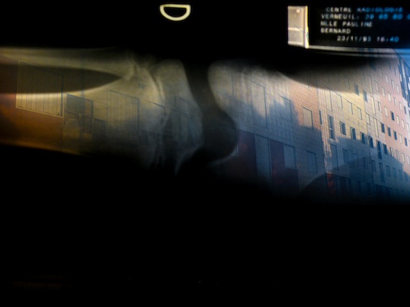Pesquisa de imagens em formato de radiofotografias que tem como tema central a problemática das intervenções territoriais e suas consequências sócio subjetivas. A obra é realizada em formato de uma série de fotografias que usam como método a experimentação de sobreposição de radiografias médicas de acetato – pertencentes a pessoas que sofreram intervenções invasivas de saúde em seus corpos (pinos, transplantes, introdução de próteses e aparelhos) – junto a fotos de zonas intensivas de conflito socioeconômico-subjetivo da cidade de Paris e do Rio de Janeiro.